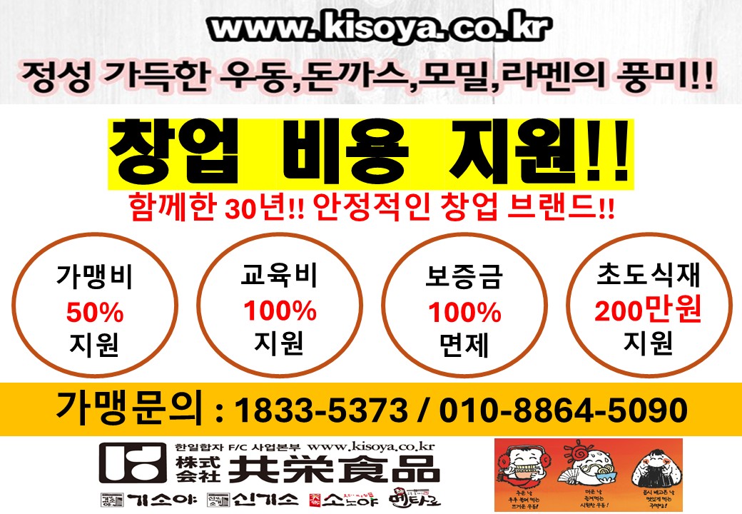 성실과 신용의 기업정신으로 정통 일본 우동 &돈까스 메뉴를 컨셉으로 시대 변화에 따라 일식 우동, 돈가스 전문점으로 특화되었고, 외식산업의 선도주자라는 목표를 가지고 브랜드 기소야, 신기소, 멘타로를 런칭하고 소규모 창업을 위한 소노야 브랜드를 런칭함으로서 일식 우동을 전문적으로 시스템화 할 수 있는 외식업 체인본부로 자리 매김 하였습니다.